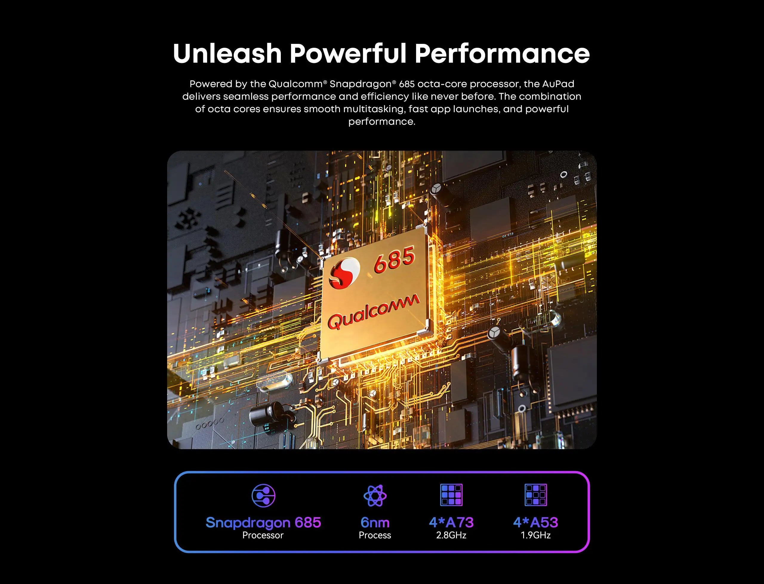 Powered by the Qualcomm" Snapdragon* 685 octa-core processor, the AuPaddelivers seamless