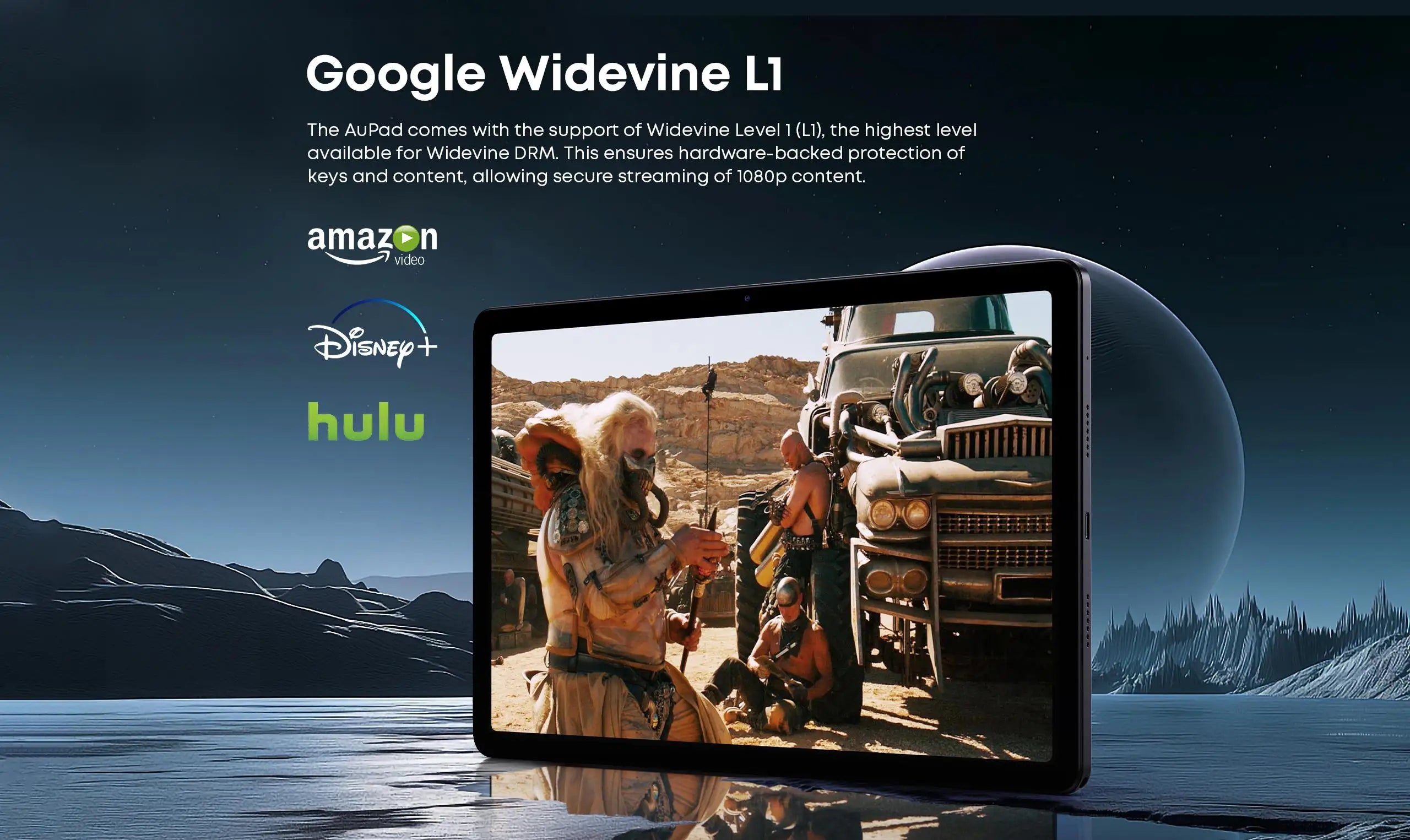 The AuPad comes with the support of Widevine Level1 (Ll), the highest levelavailable for Widevine DRM.This ensures hardware-backed protection ofkeys and content, allowing secure streaming of 1080p content.