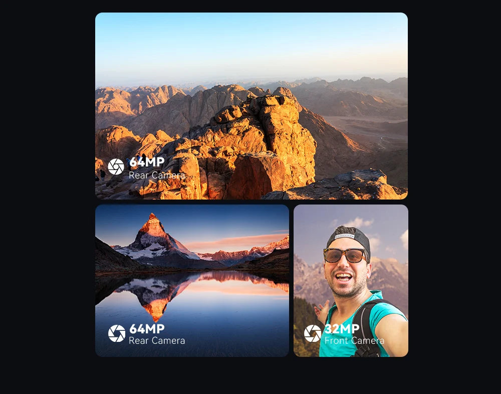 With a 64MP PDAF rear camera and a 32MP front camera, every shot is sharp and professional. Whether it's scenic landscapes or video calls, you’ll always look your best.