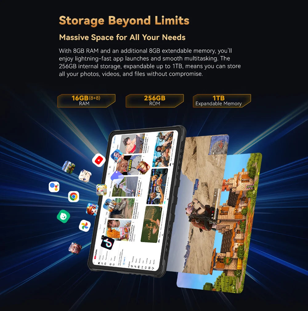 Powered by Android 14, the TAB KINGKONG 2 provides access to an extensive library of apps and tools. Whether you’re working, streaming, gaming, or reading, the latest Android OS offers a seamless, user-friendly experience.