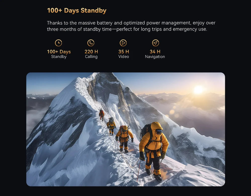 Thanks to the massive battery and optimized power management, enjoy over three months of standby time—perfect for long trips and emergency use.