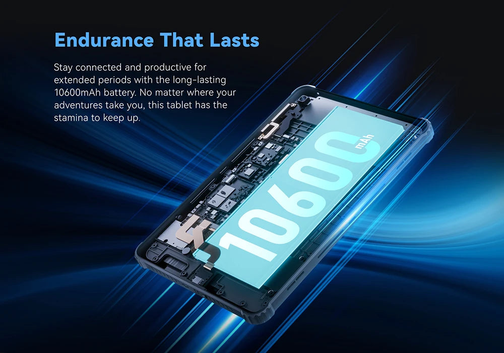 Stay connected and productive for extended periods with the long-lasting 10600mAh battery. No matter where your adventures take you, this tablet has the stamina to keep up.