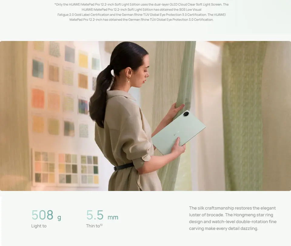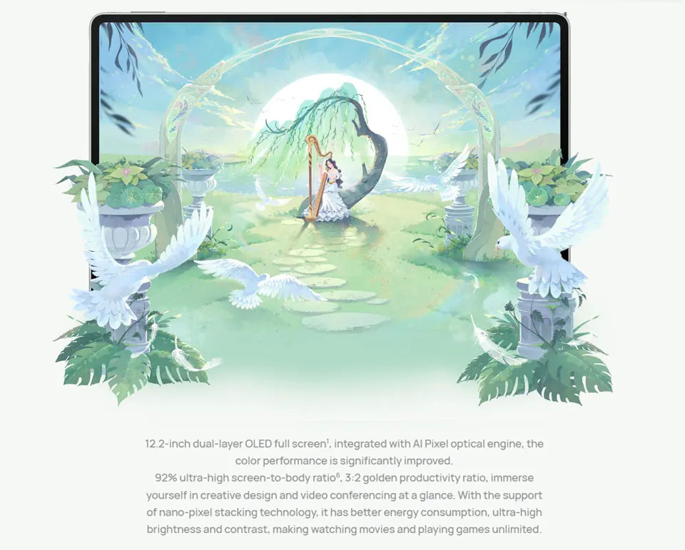 HUAWEI MatePad Pro 12.2 | 12.2-inch dual-layer OLED full-screen | HarmonyOS 5.0 | 10,100 mAh battery | Bluetooth 5.2 OTG support | 8-megapixel camera + 50-megapixel main camera