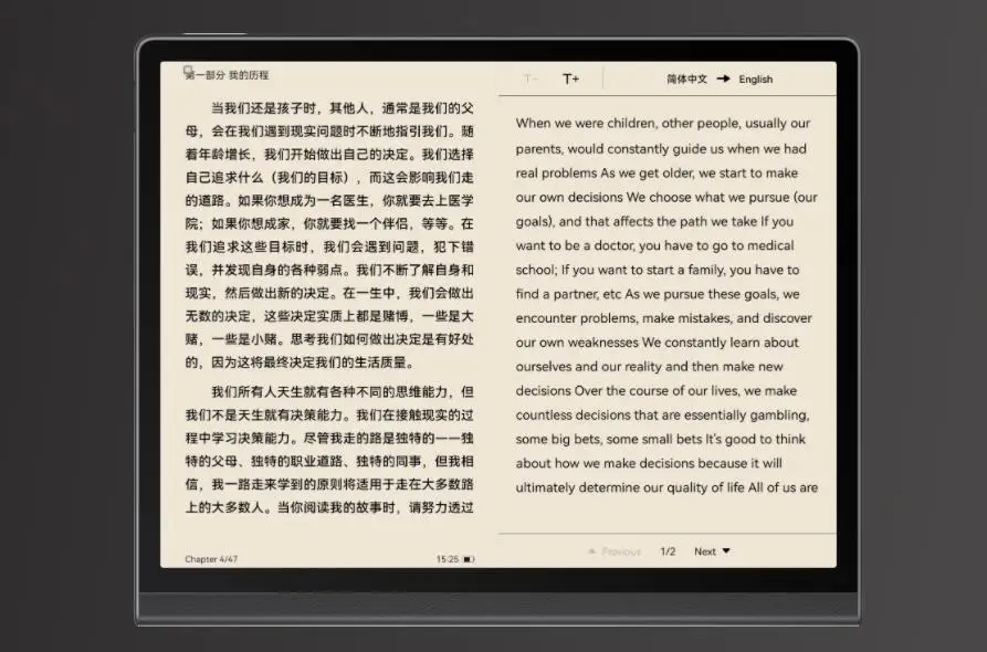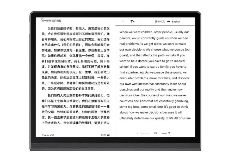 Language is never a barrier with HUAWEI MatePad Paper. Accurately translate all kinds of content into your desired language, whether an article or best-selling literature.*