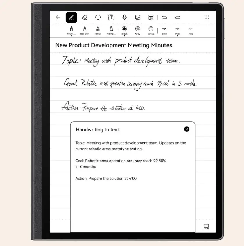 Easily and accurately translate handwritten notes into text to share meeting minutes conveniently with MatePad Paper.*