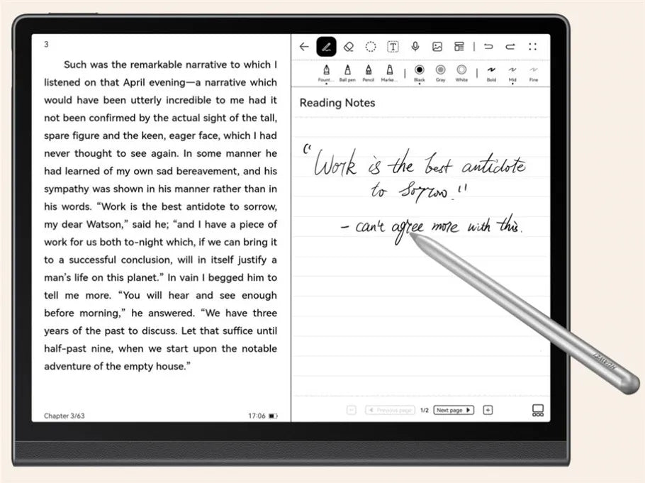 Abundant high-quality reading content as houses* as well as third-party reading resources on your MatePad Paper. Access content spanning across all topics, and open up a world of reading experience.*