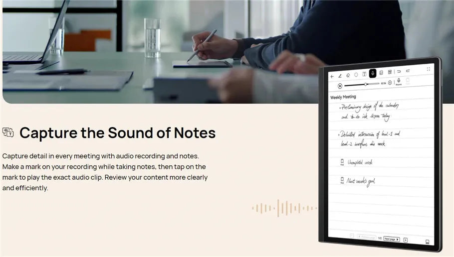 Capture detail in every meeting with audio recording and notes. Make a mark on your recording while taking notes, then tap on the mark to play the exact audio clip. Review your content more clearly and efficiently.