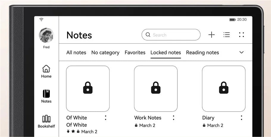 Locks confidential notes with a simple touch of the Fingerprint Power Button, and just touch again when you want to unlock.*