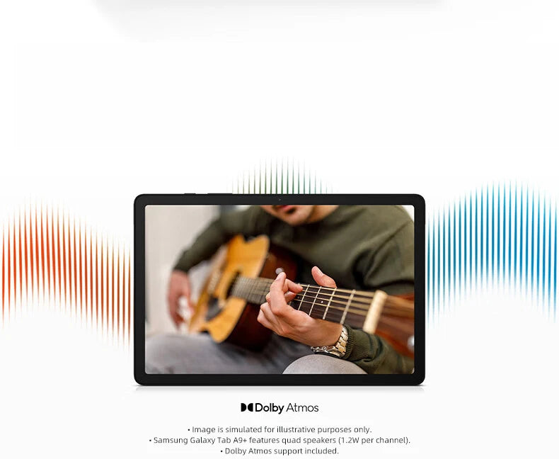 Immerse yourself in rich, multidimensional sound with the surround audio experience of the Samsung Galaxy Tab A9+. Whether you're watching movies or listening to music, enjoy stunning clarity and depth with 3D audio technology.
