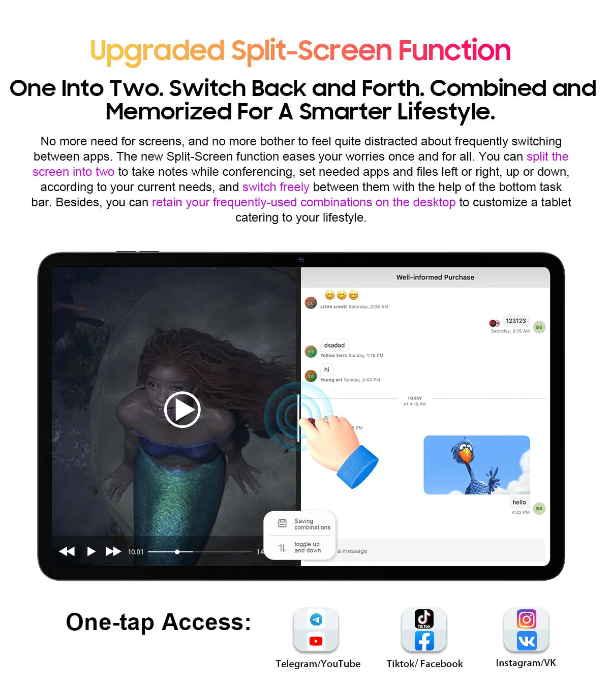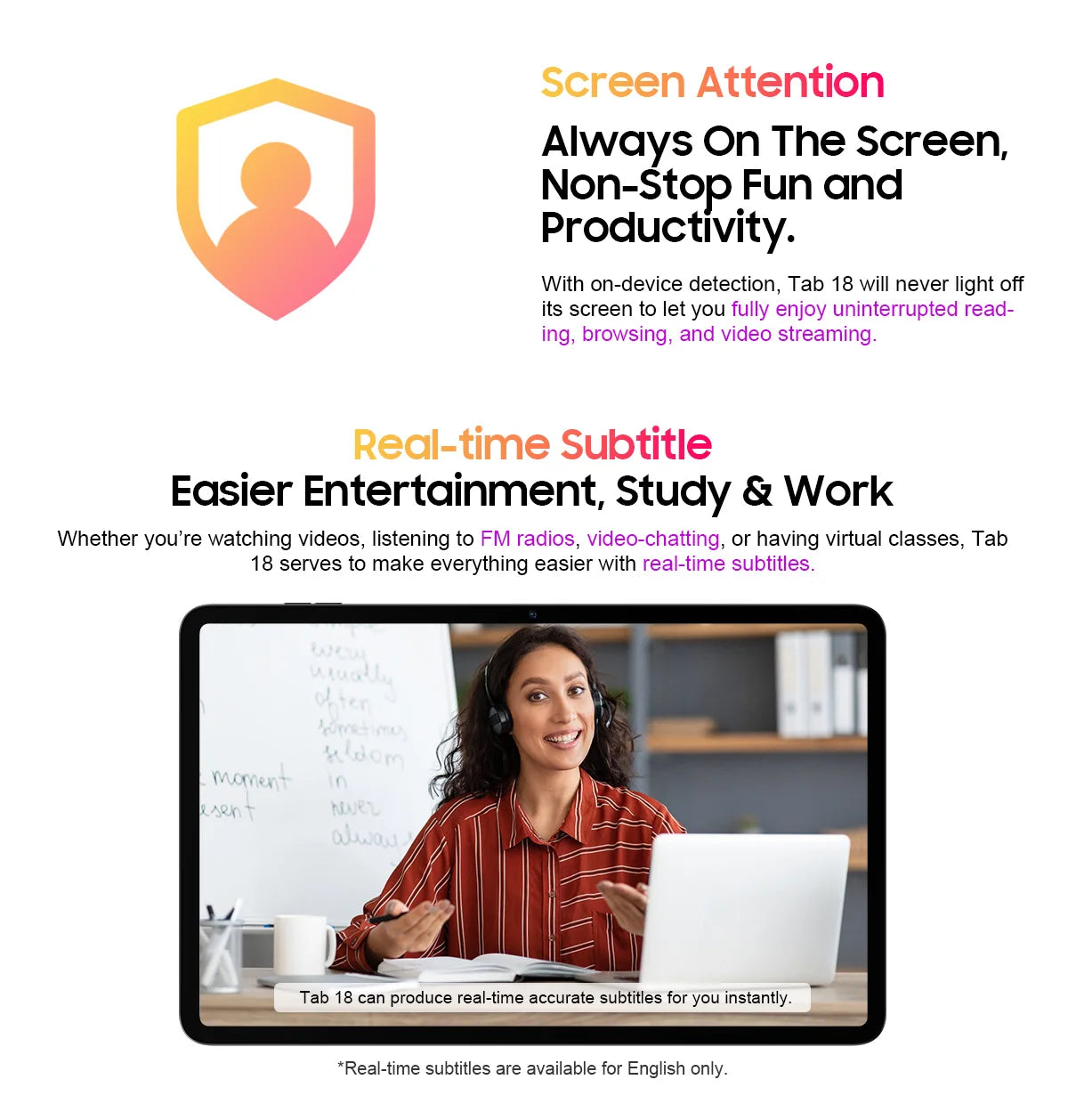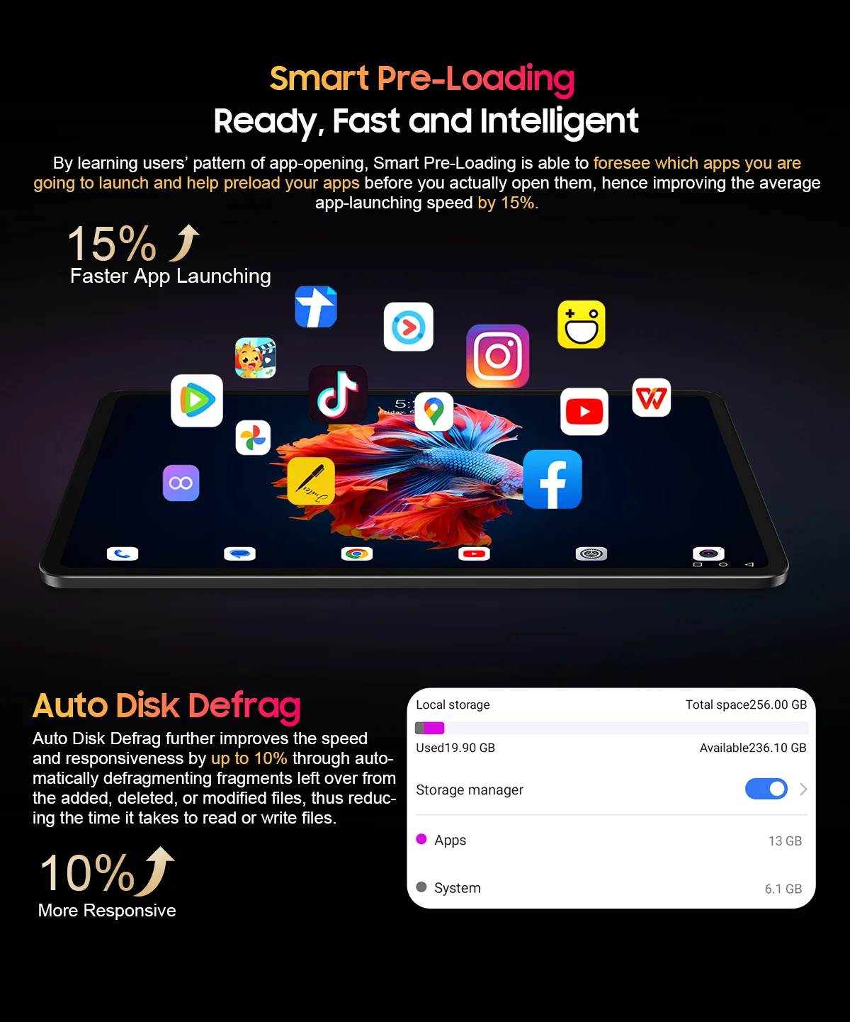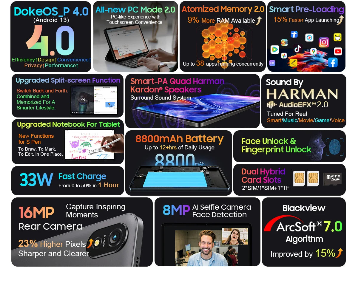 Screen : 12" FHD+ IPS 1200*2000 Display, Widevine L1 Support 1080P