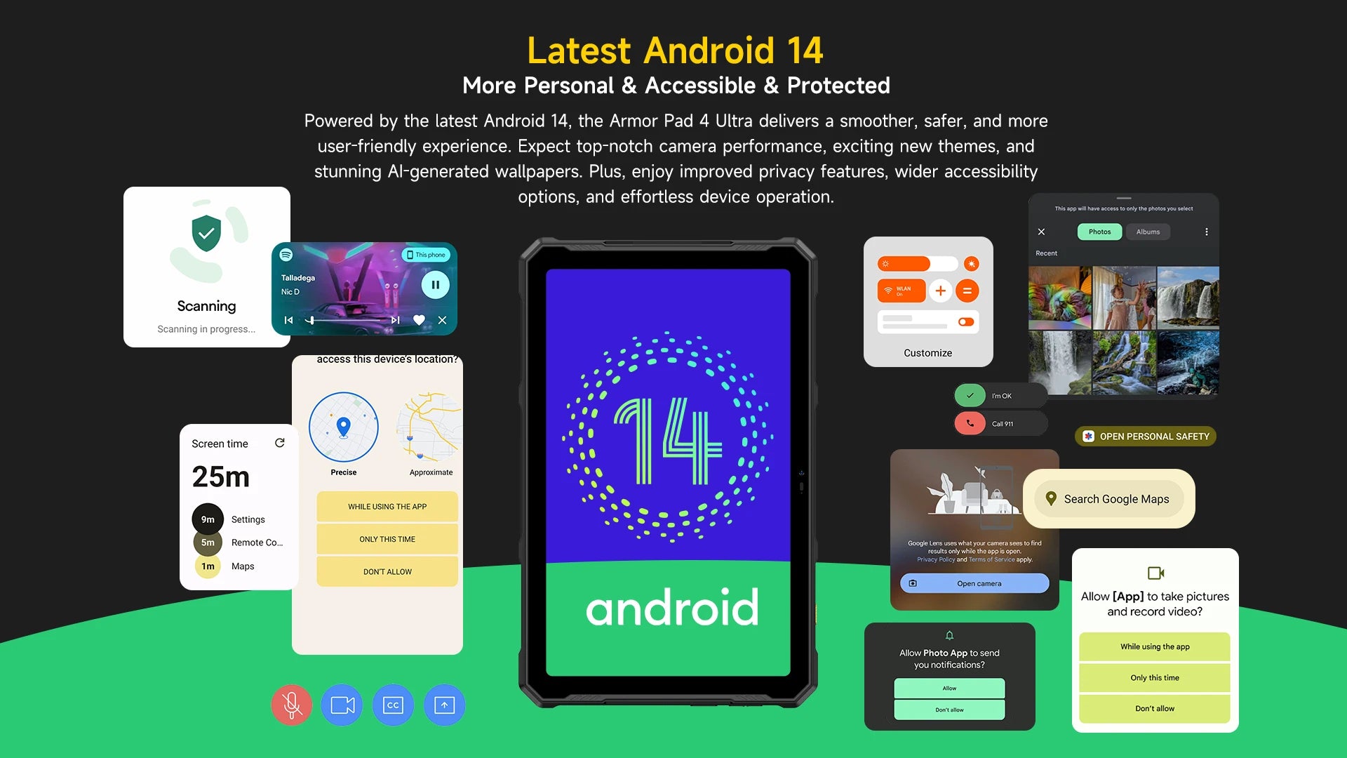 Packing a punch while staying efficient, the Armor Pad 4 Ultra tackles your day with ease. The MediaTek Dimensity 6300 6nm processor,featuring an 8-core CPU and advanced Arm Mali-G57