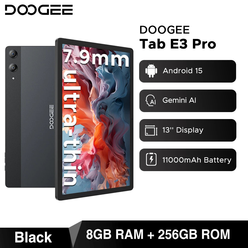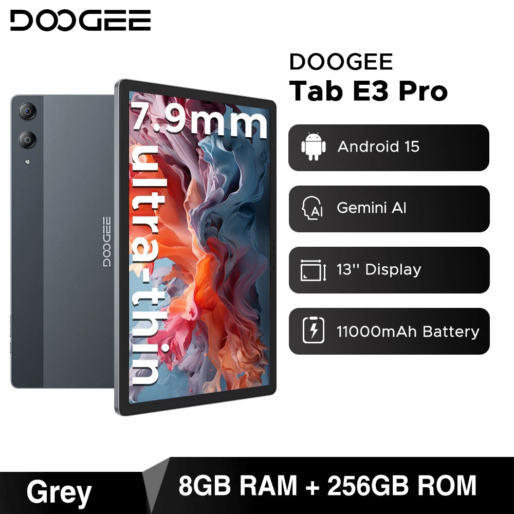 World Premiere DOOGEE Tab E3 Pro Tablet Gemini AI 13'' Screen Android 15 8GB 256GB 7.9mm Ultra-thin 11000mAh Battery Smart Pad