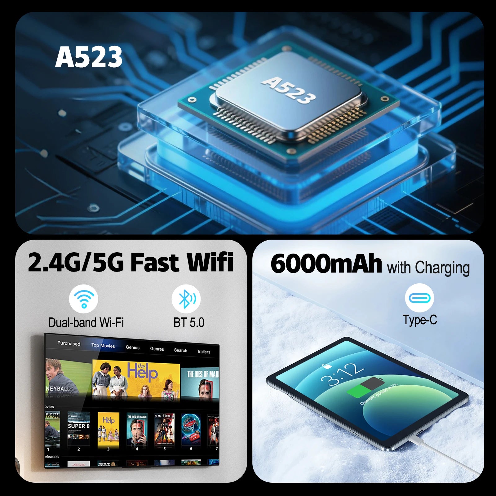 Powered by A523 chip, ensuring smooth performance for your tablet.