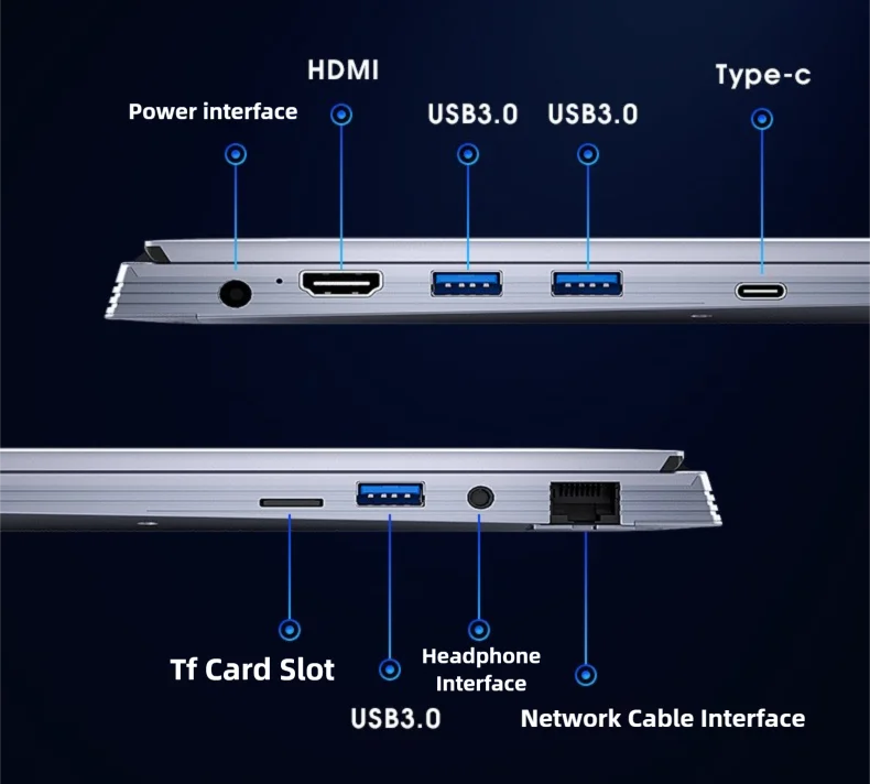 USB 3.0 * 3; 3.5mm headphone jack; TF card slot; HDMI; DC; RJ-45;TYPE-C Full Function * 1 |