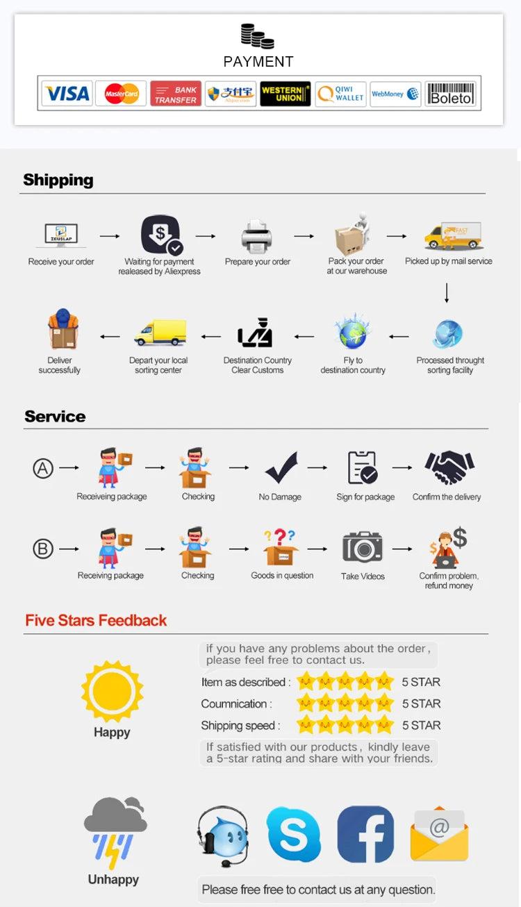 A: VB offer our buyer 7 days no reason return, 15 days no reason exchange, 1 year warranty.