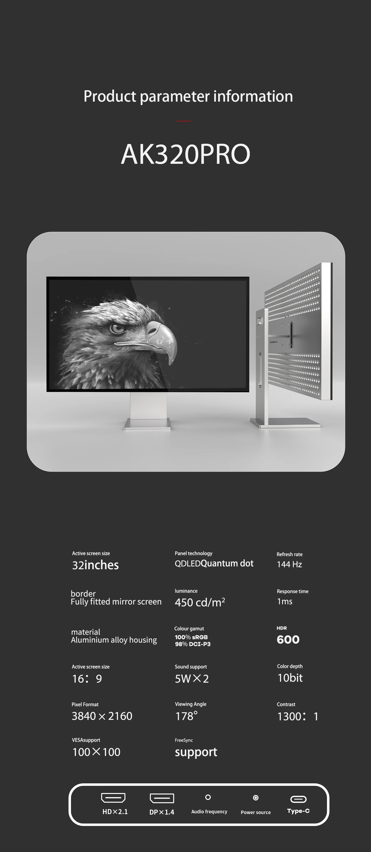 Compatible G-sync&FreeSync/HIDPI/MPRT/Response acceleration/HDR |