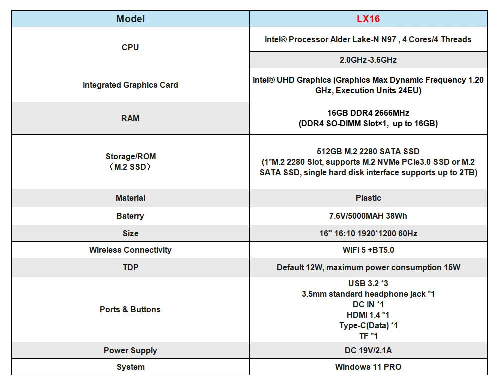 ACEMAGIC 16" Ultra Slim Laptop 16GB RAM 512GB SSD