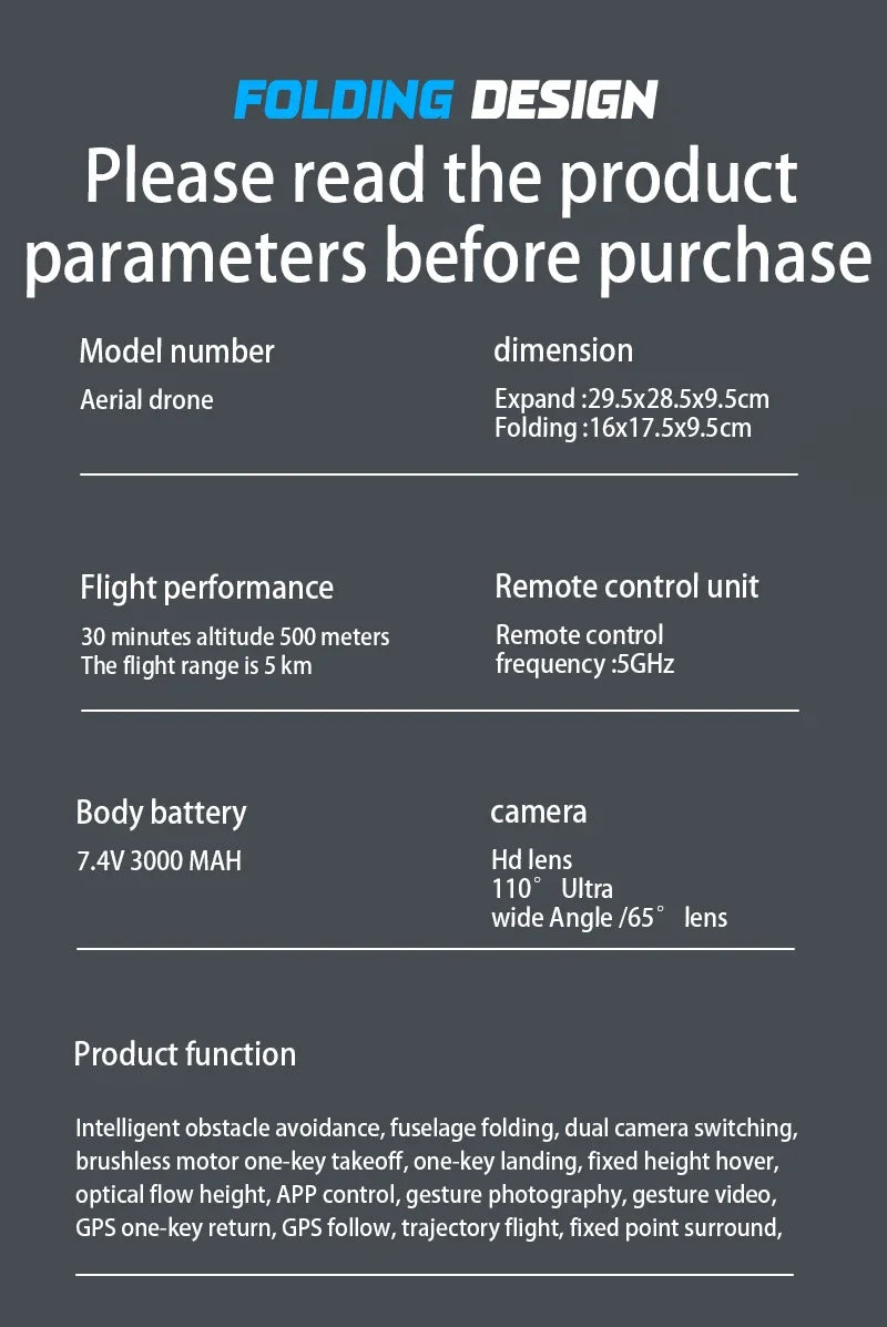 Equipped with screen remote control (rechargeable)/three-axis electrically adjustable gimbal/GPS/optical flow switching/brushless motor/long endurance 7.4V large battery/low battery/loss of control/long-range return/following/flying around/automatic switching of optical flow/GPS