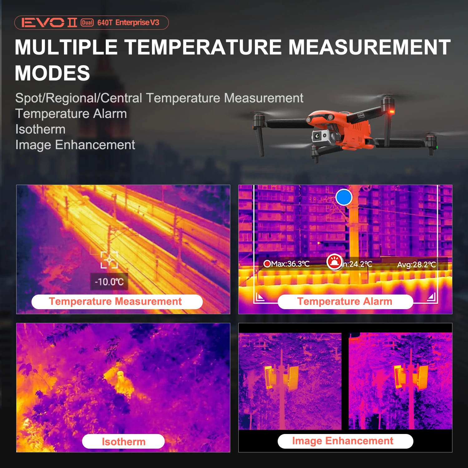 EVO II Dual 640T Enterprise V3 supports 4x lossless zoom and 16 times digital zoom. Obtain clear intel from farther away without suspicion.