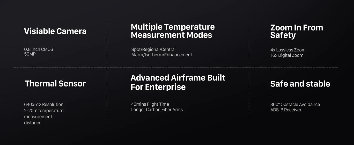 Equipped with a 640 x 512 high-resolution thermal imaging camera featuring a 13mm focal length lens and 16x digital zoom, it is easy to observe distant targets with incredible detail. With the new image processing algorithm, thermal details are incredibly crisp and clear.