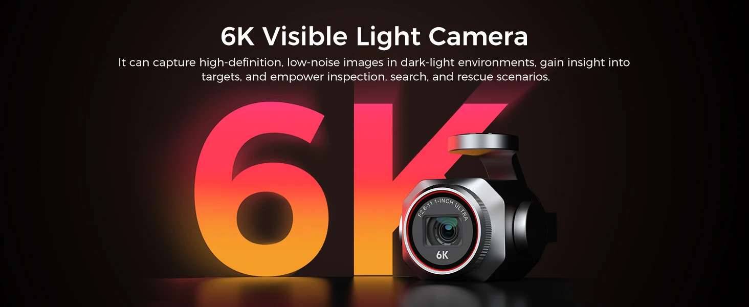 Equipped with a 6K visible-light camera, it can still capture high-definition, low-noise images in low-light environments, providing insights into targets and empowering police enforcement, patrol inspection, search, and rescue scenarios.