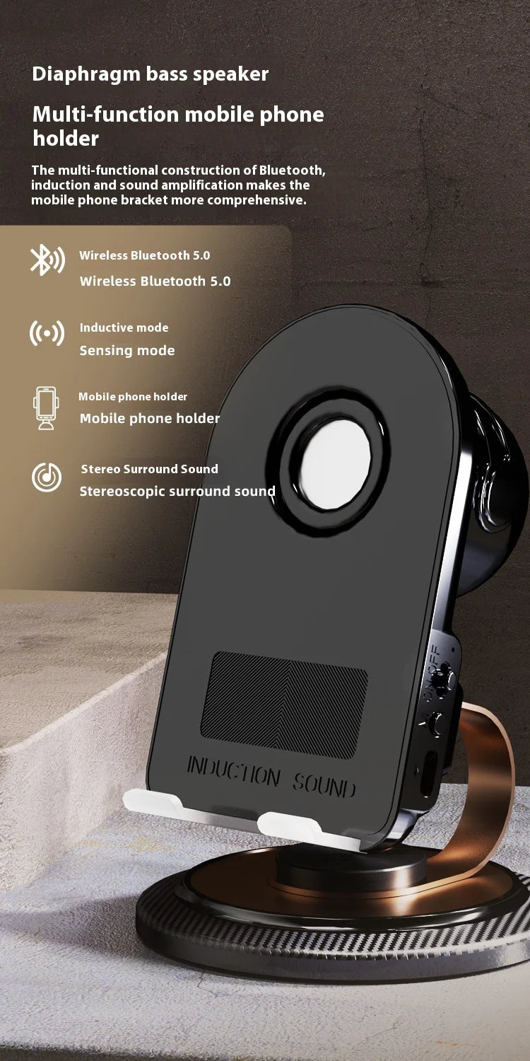 The multi-functional construction of Bluetooth,induction and sound amplification makes themobile phone bracketmore comprehensive