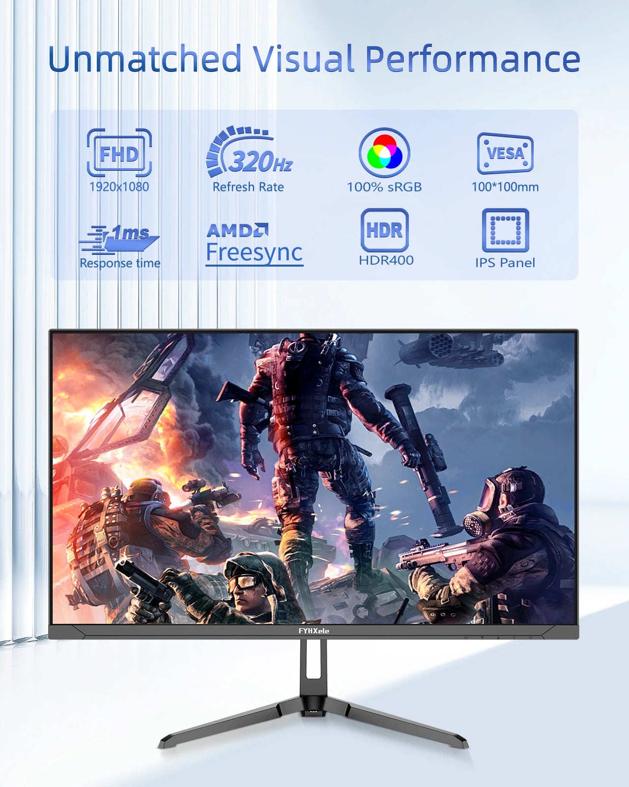 Ultra-fast response: 320Hz refresh rate and ultra-fast response time of 1ms enhance your gaming performance, immersive gaming experience, 1K display ensures accurate transmission of each frame, providing you with seamless and responsive gaming experience.