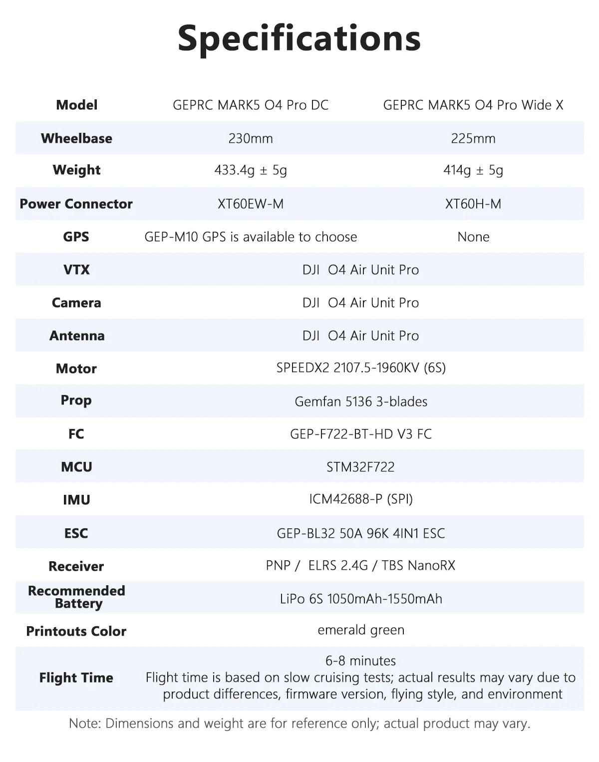 GEPRC MARK5 O4 Pro FPV Drone DC/Wide X TAKER F722 Stack O4 Air Unit GPS SPEEDX2 2107.5 1960KV Motor 6S FPV Quadcopter Freestyle