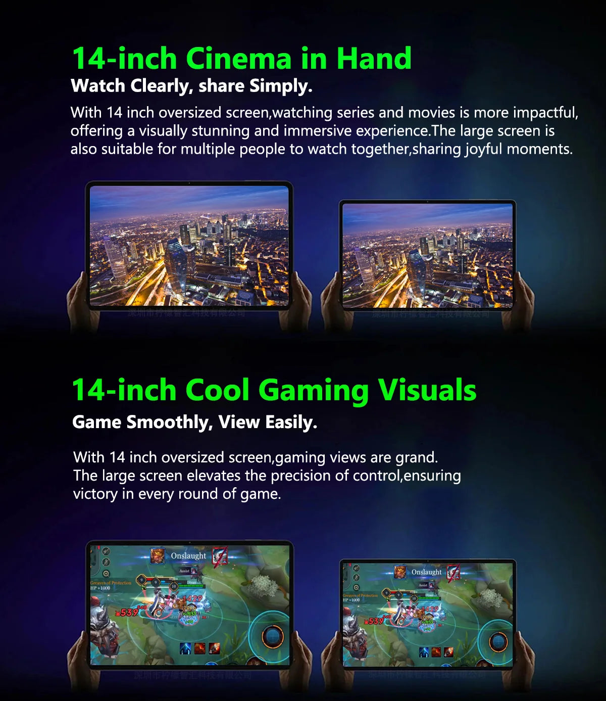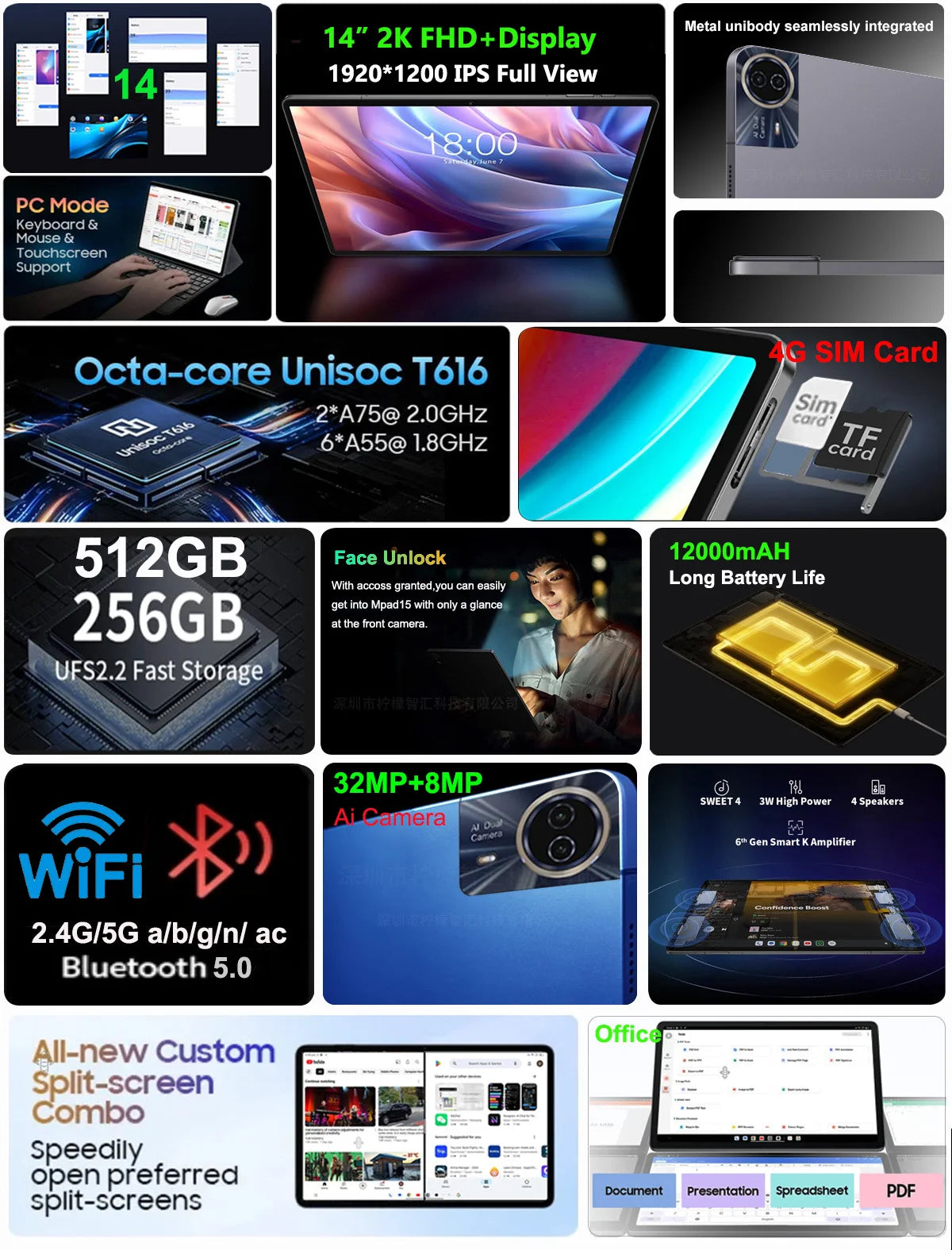 Global Version Super Large Screen 14 inch Tablet Pc Android 14 4G Phone Call 16GB+512GB Tablets 14" GPS 5G WiFi FM 12000mAh 32MP