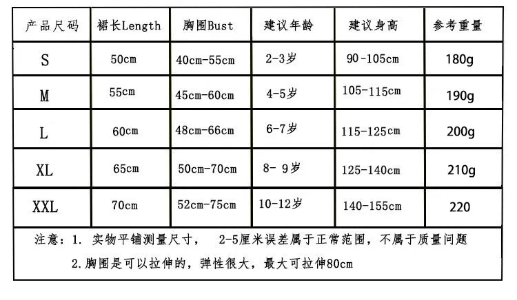 appropriate height: S(2-3T),M(4-5Y),L(6-7Y),XL(8-9Y),XXL(10-12Y)