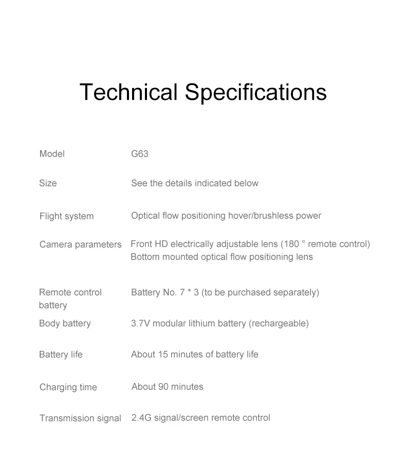 Function: Up/Down/Front/Rear, Left/Right Turn, Lateral Flight, LED Light, 360 ° Stunt Roll, Headless Mode, One Click Auto Return, Height Maintenance Mode WiFi FPV, Dual Camera Switchable, Supports Landscape/Portrait/Head Up Shooting, Camera Electric Adjustable 90 °