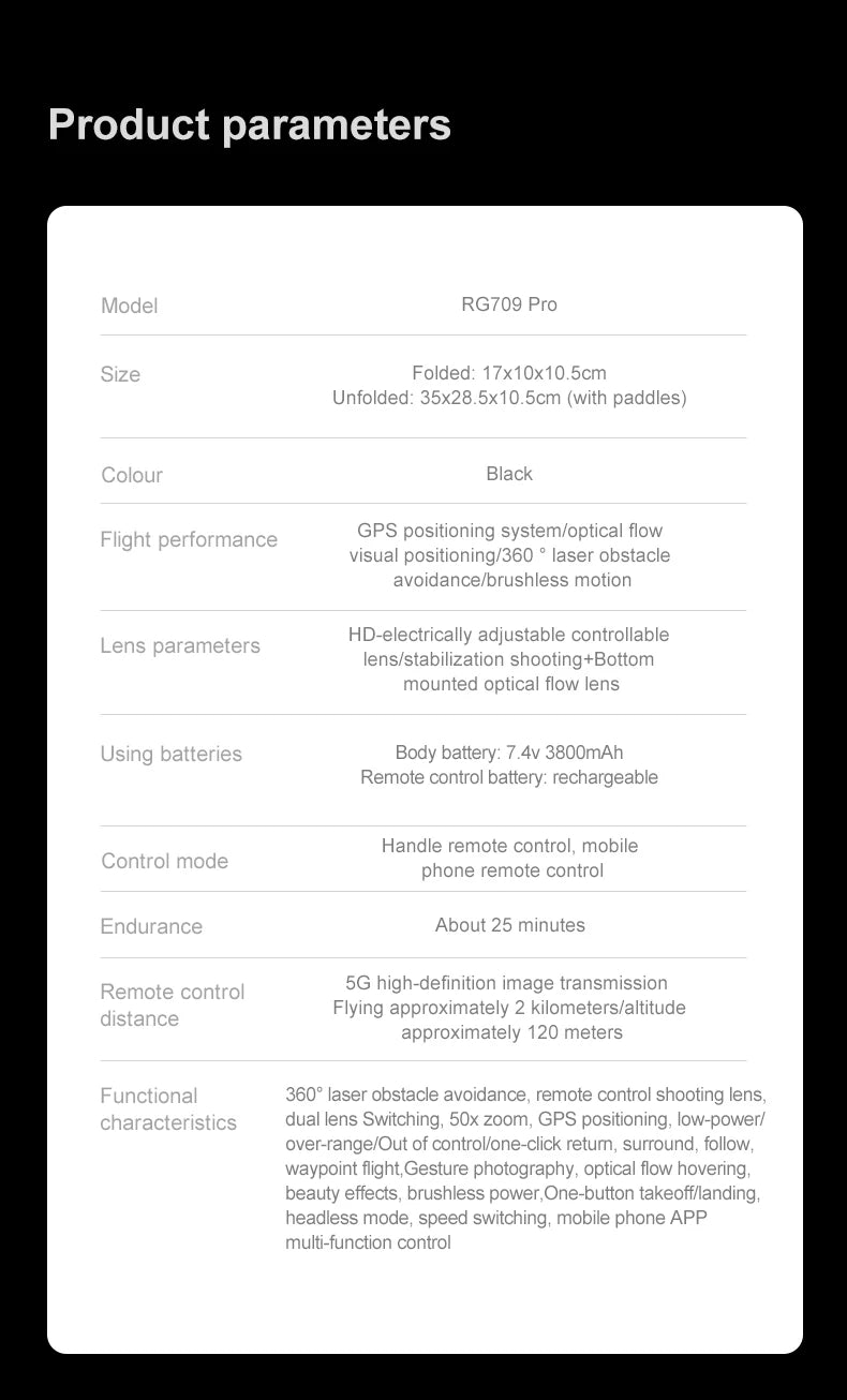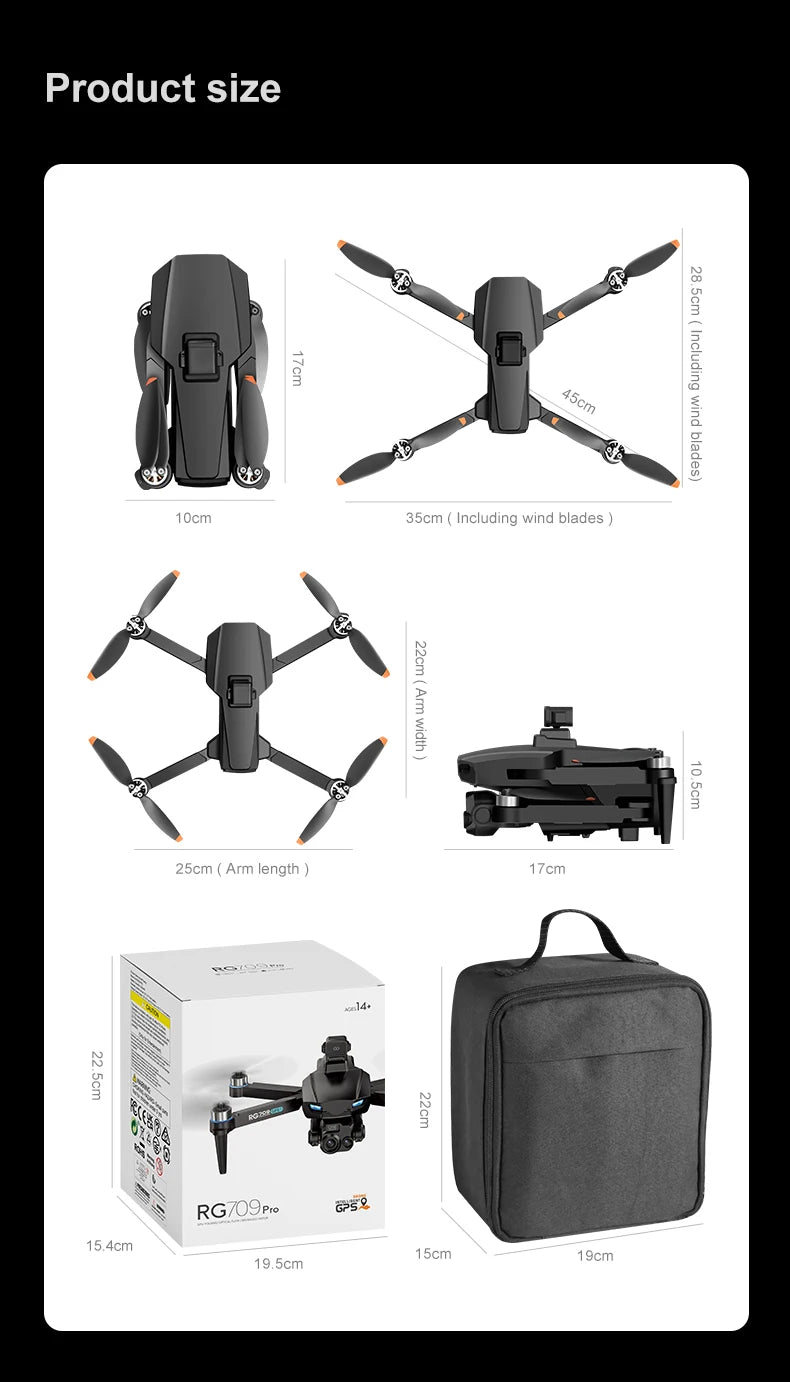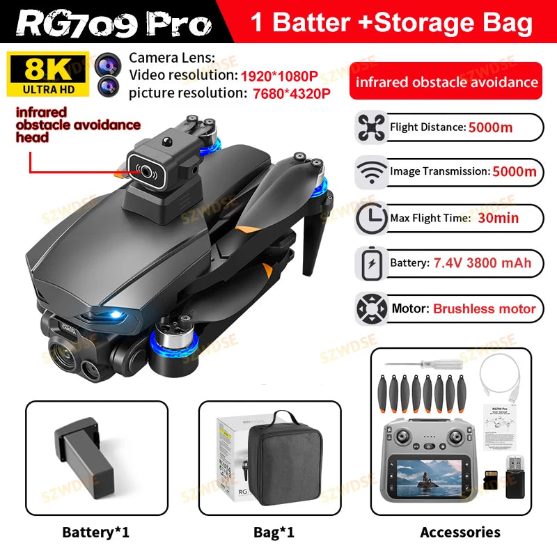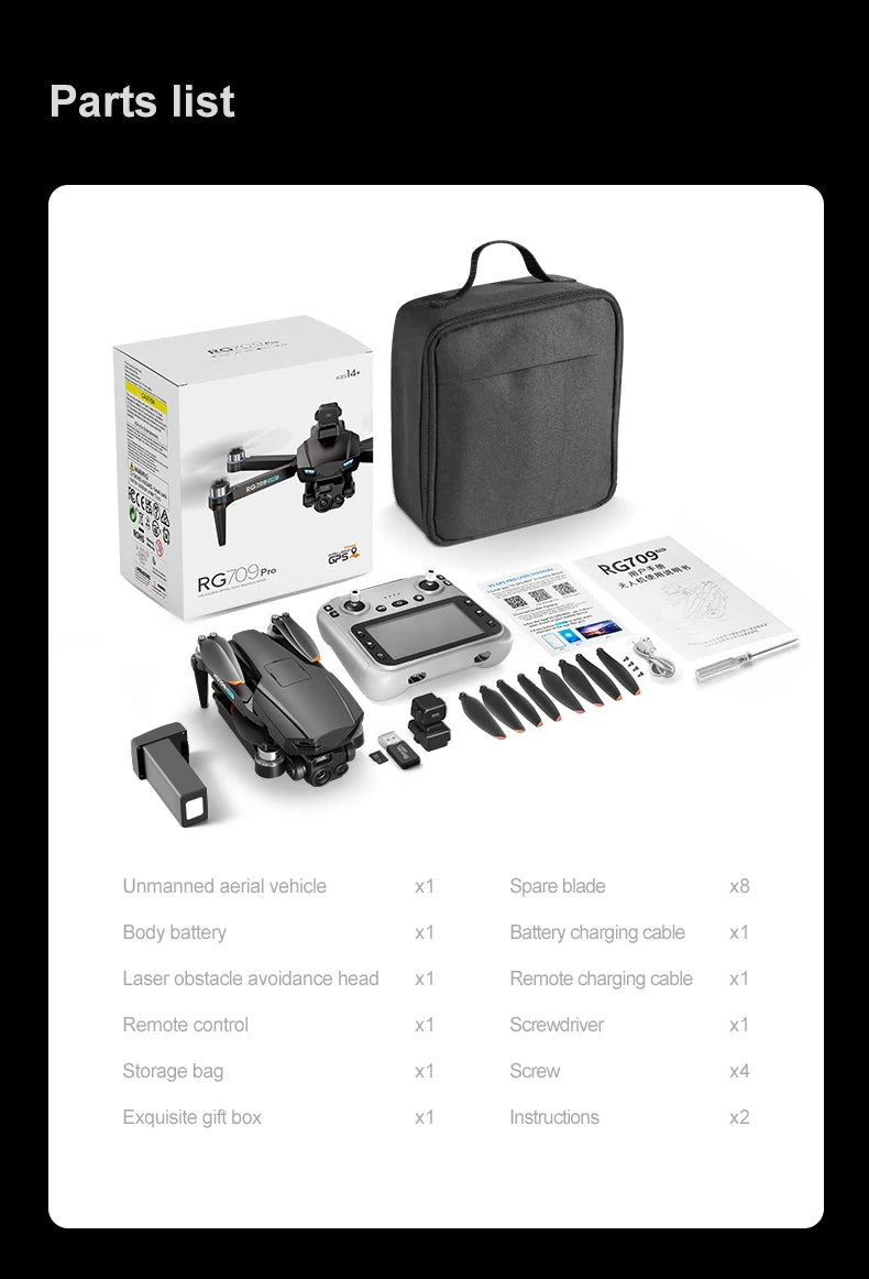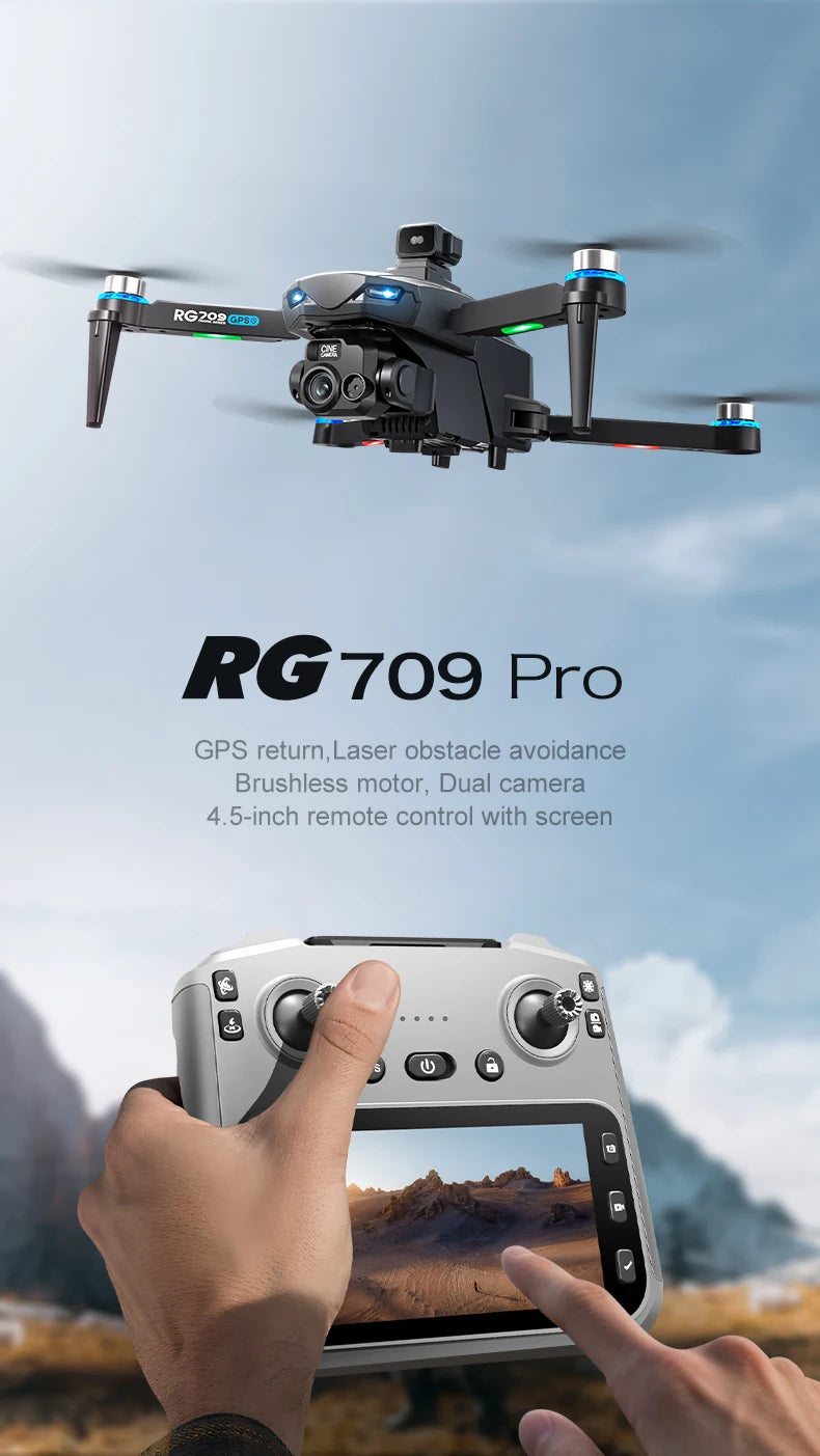 New RG709 PRO Drone With 4.5-inch Screen 8K HD Dual Camera Aerial Photography GPS Brushless Obstacle Avoidance Quadcopter Toy
