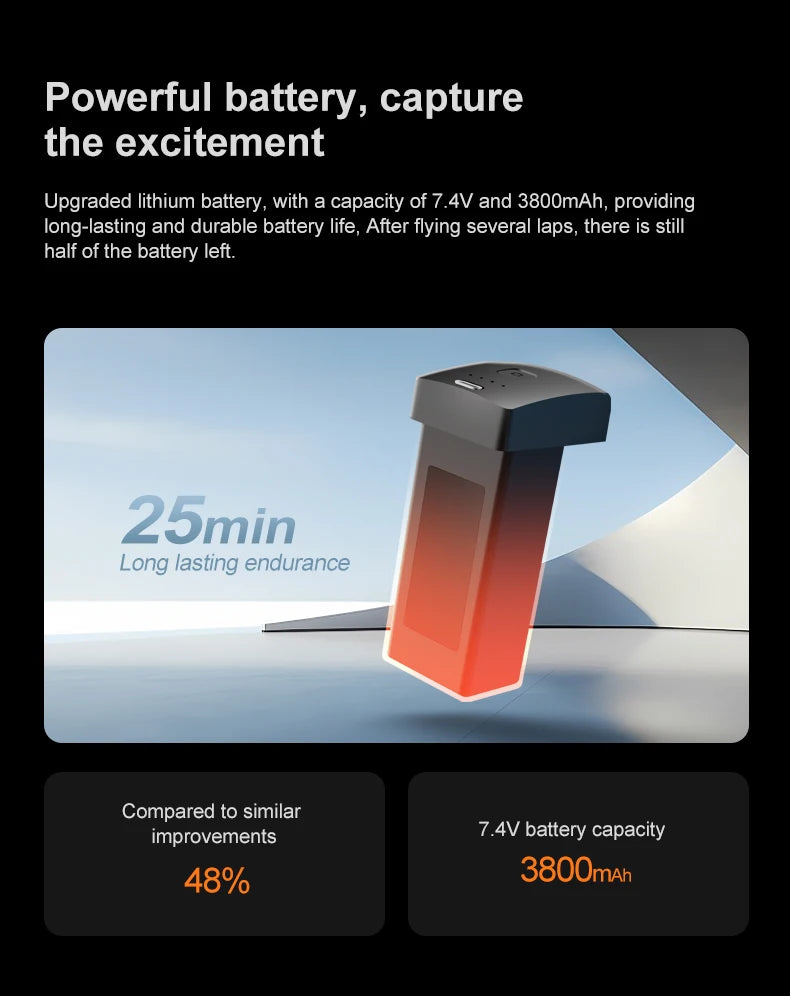 ③ Ultra long battery life of 7.4V 3800mah, with a battery life of about 25 minutes;