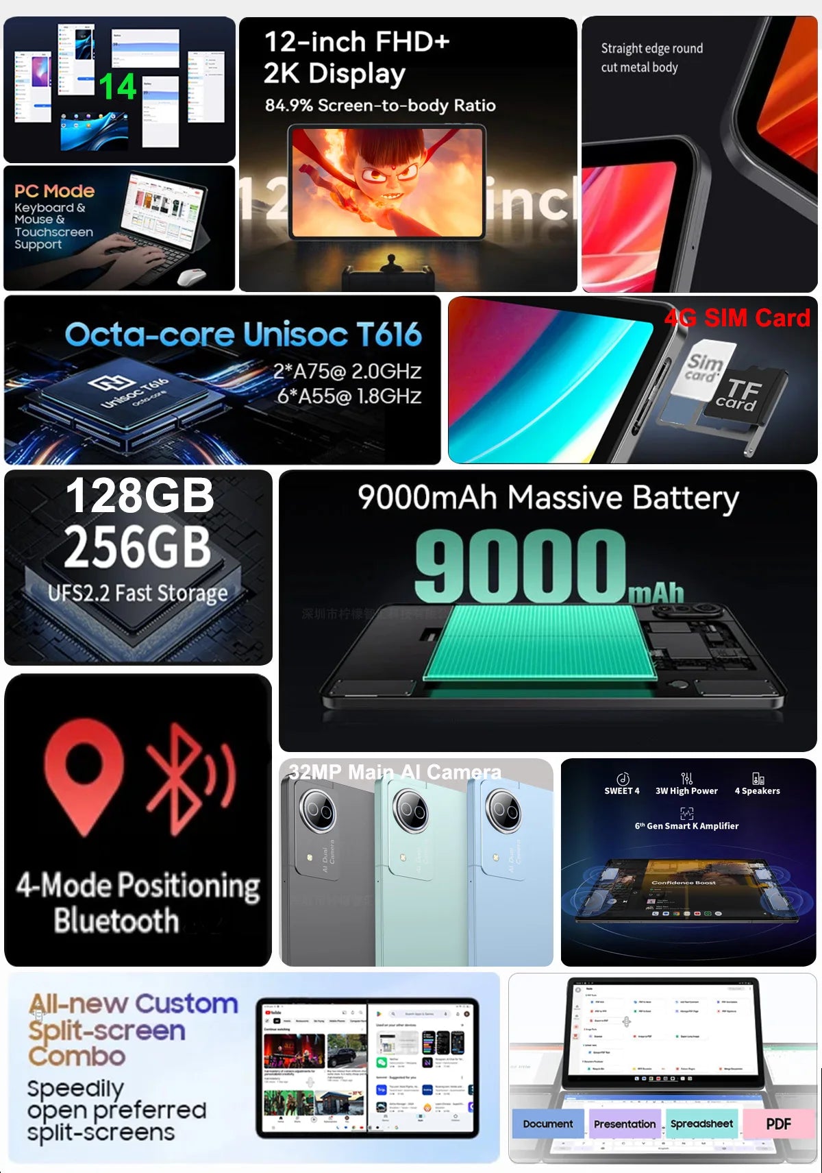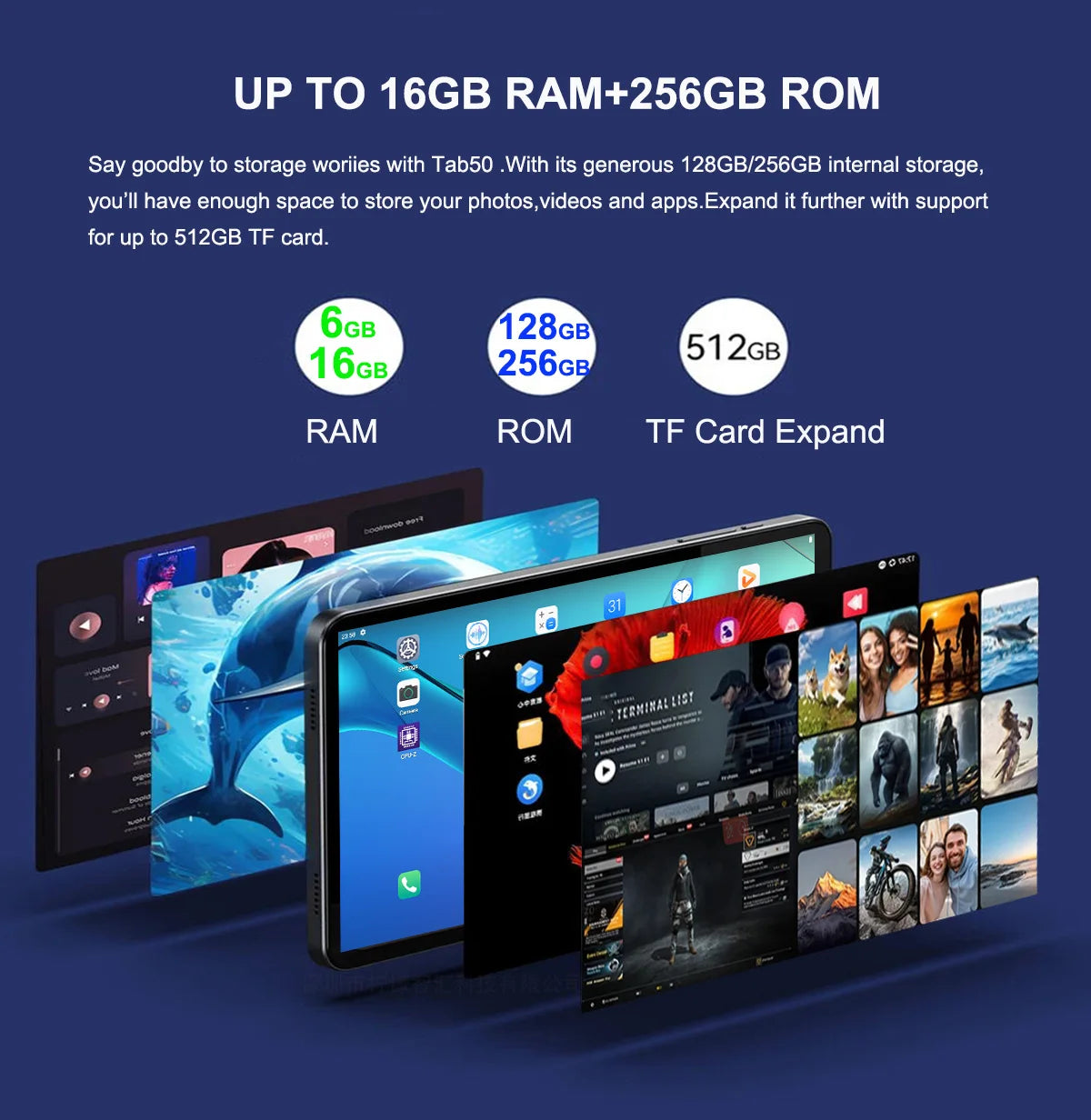 256gb version TAB50 tablets: 16gb RAM 256GB ROM