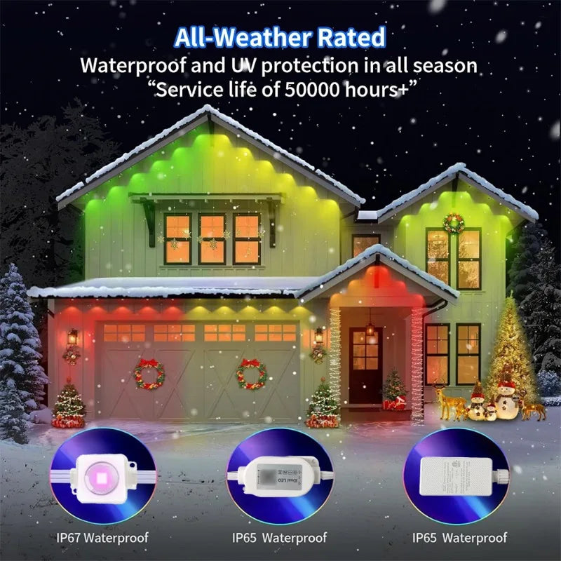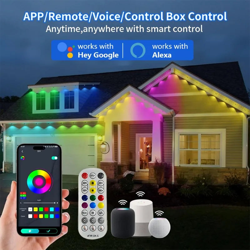 Outdoor LED Eave Lights RGB 300FT Smart Waterproof String Lights APP With Scene Mode Remote Control Christmas Holiday Decoration
