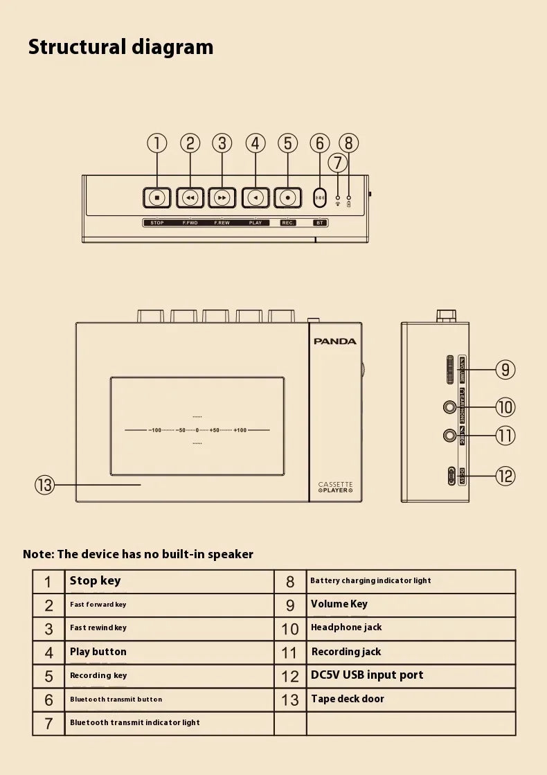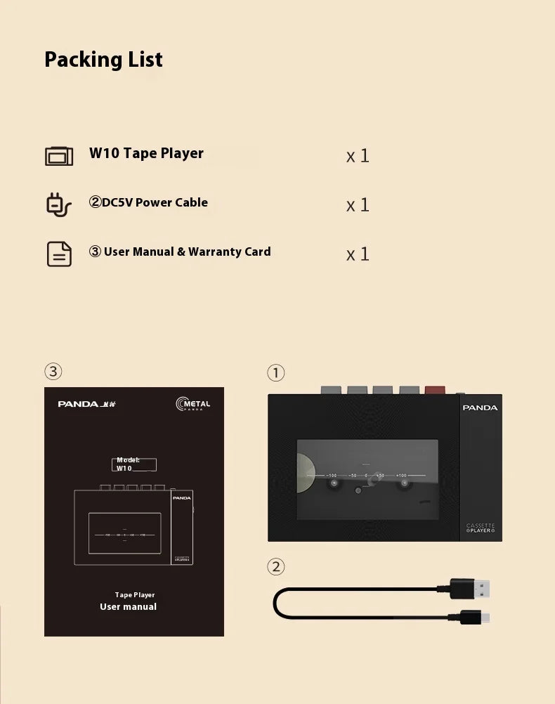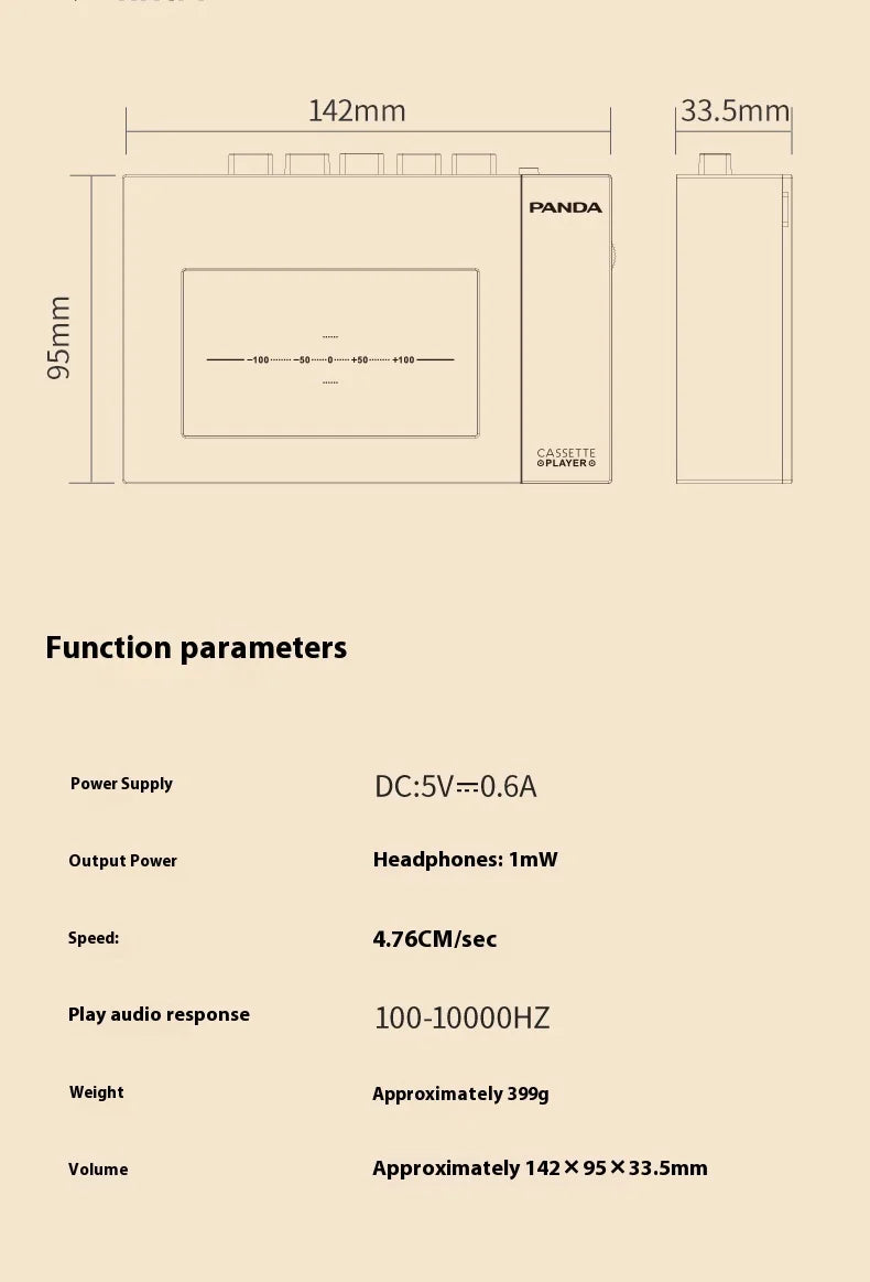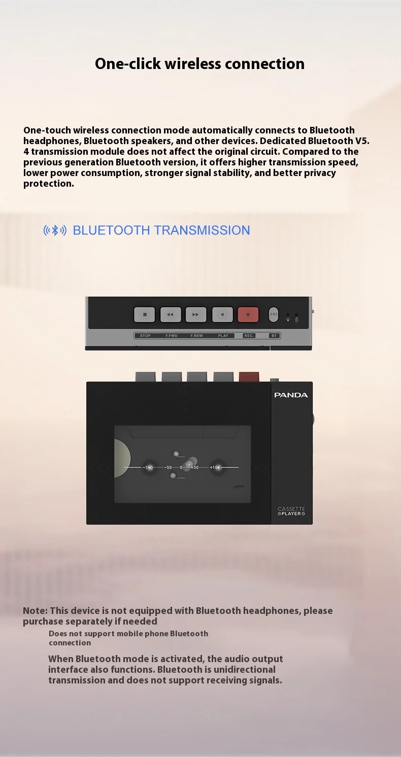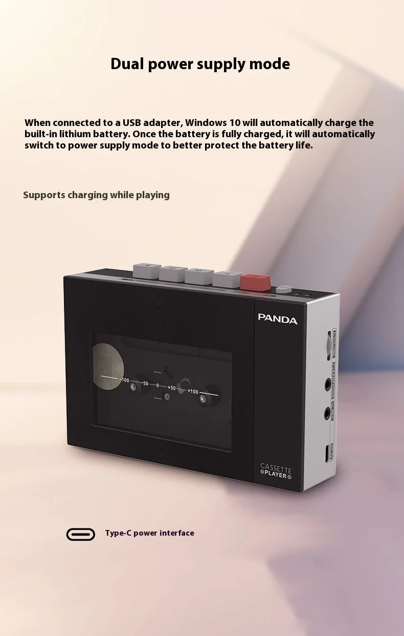 Panda W10 Retro Bluetooth Portable Cassette Player Tape Recorder Music Player Portable Walkman Audio Multiple Power Supply