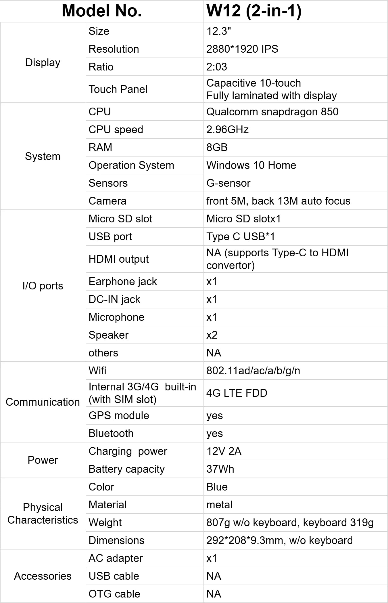 PiPO 2-in-1 Surface Pro 12.3" Window 10 Tablets 8GB 256GB 4G LTE Tablet PC With Keyboard And Pen For Business Laptop