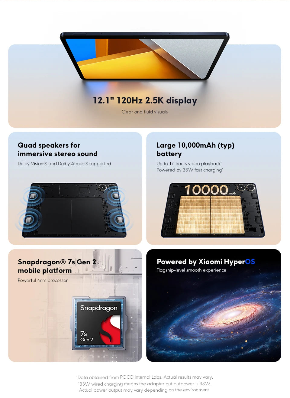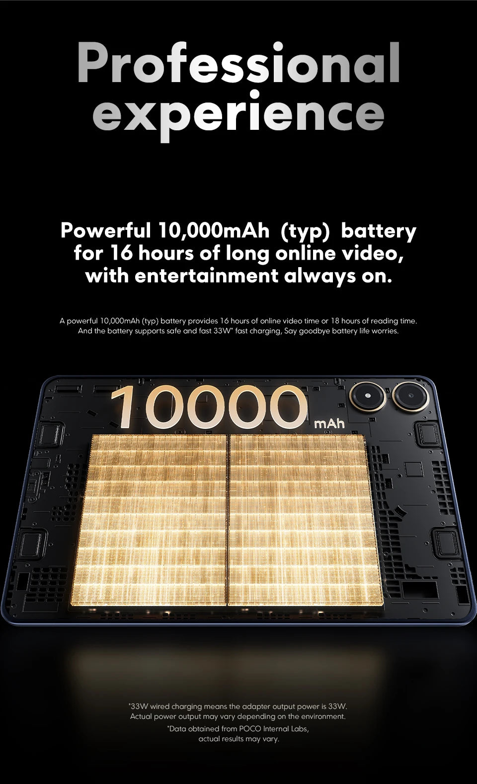 Battery ------ 10000mAh (typ), Supports 33W fast charging