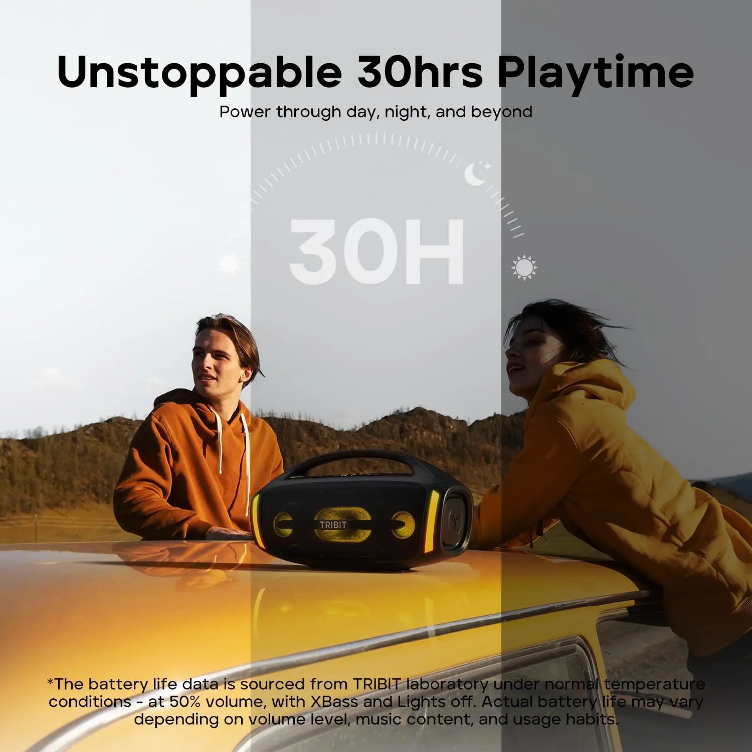 ● Unstoppable 30hrs Playtime: Power through day, night, and beyond with the TRIBIT speaker! With an impressive 30-hour playtime, this speaker has enough energy to keep the fun going until the end of the night. Plus, its colossal battery capacity allows you to charge your phone and other devices, ensuring the entertaining vibes never stop!