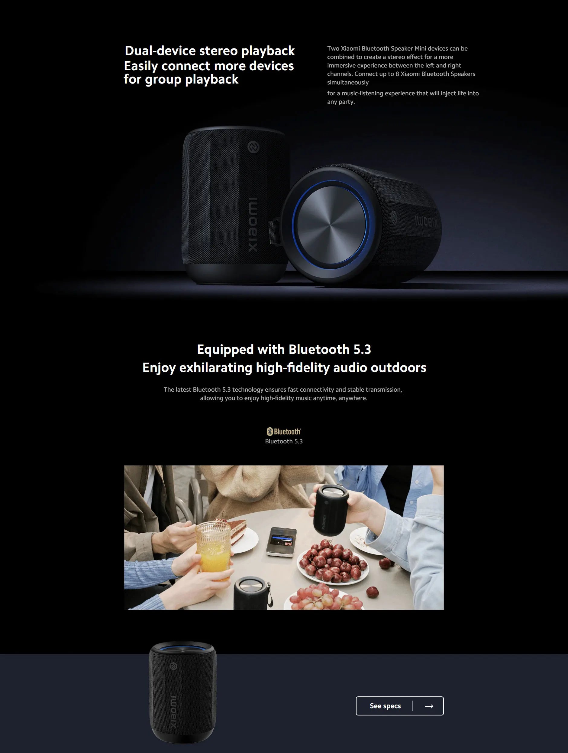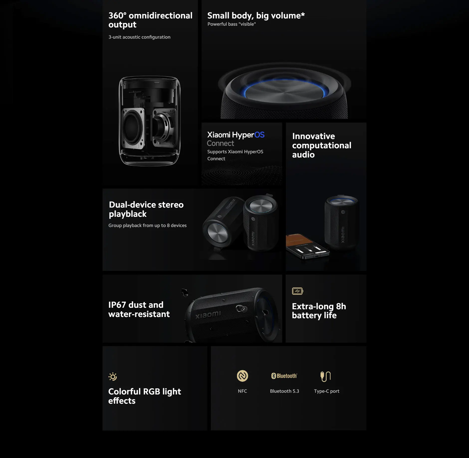 Xiaomi Bluetooth Speaker Mini Portable Stereo Surround Wireless Speaker Outdoor Sound IP67 Waterproof App Smart Control