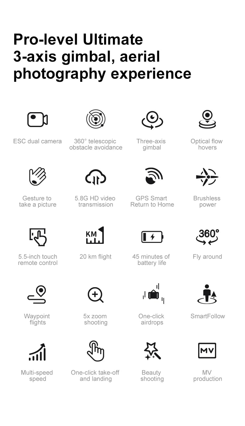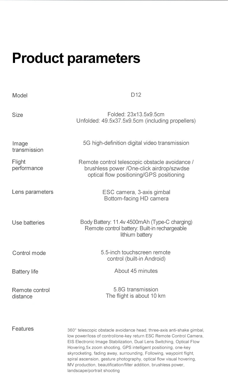 ZLL D12 Drone With 8K HD Camera Screen Remote GPS 360° Obstacle Avoidance 5G Wifi FPV Brushless Motor RC Dron Load capacity 500g