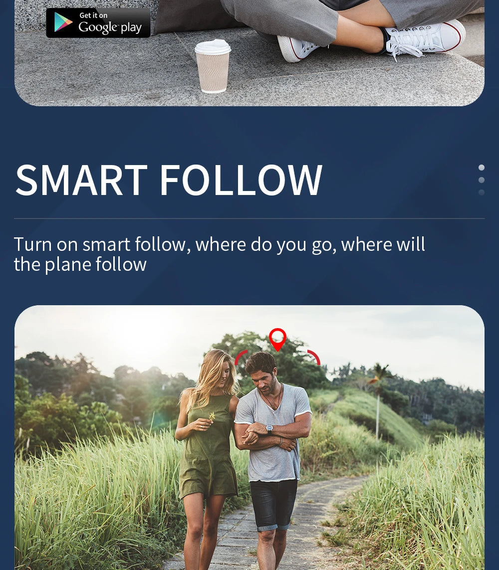 3. ① GPS smart follow: After the drone is connected to the GPS, open the APP follow function, and the drone will follow the mobile phone.